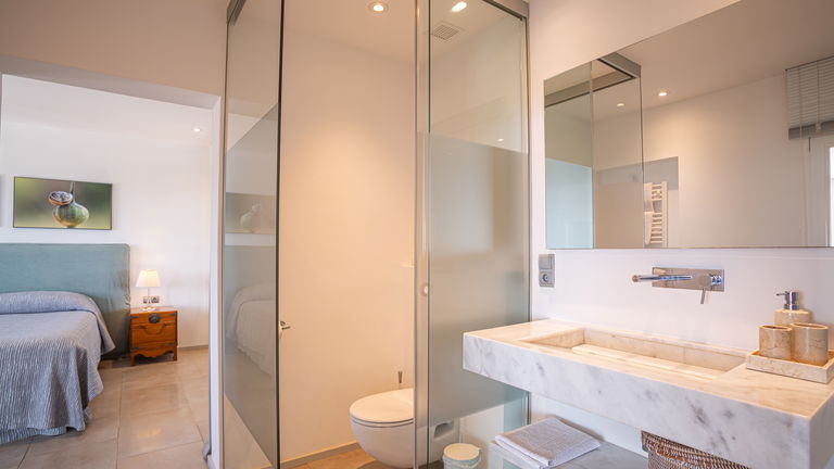 Son estancias amplias, cómodas y luminosas, decoradas con un estilo moderno y elegante que resalta el ambiente acogedor de la villa. Todas las habitaciones disponen de armarios de gran capacidad y aire acondicionado. La habitación principal, con baño en suite, permite un acceso directo a la zona exterior, donde se encuentra la piscina privada y el solárium. ¡Perfecta para disfrutar de todas las comodidades!